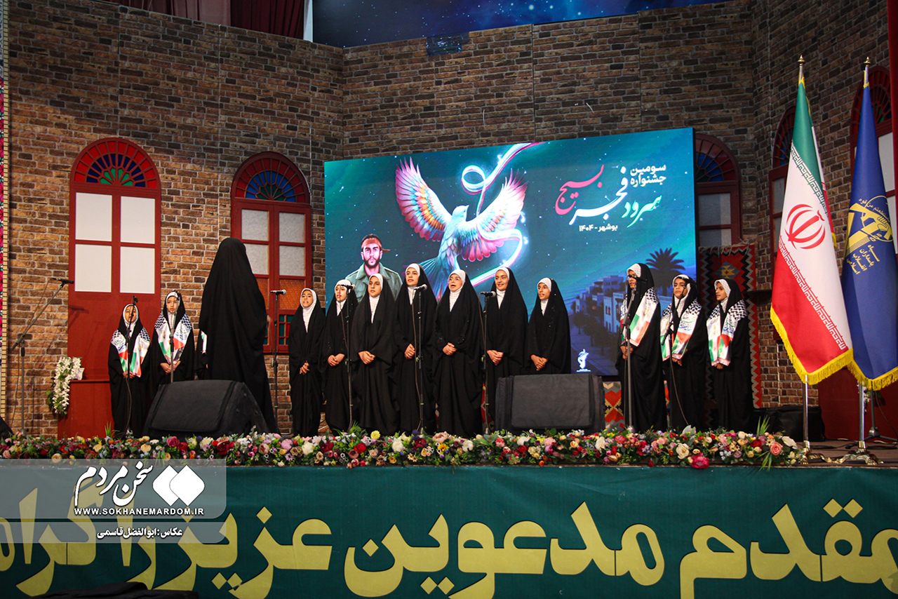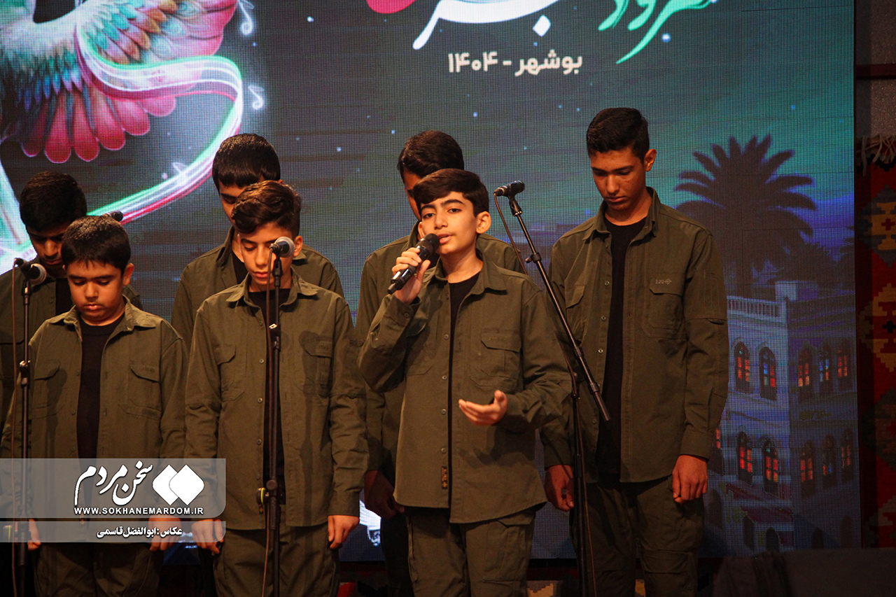 سخن مردمابوالفضل قاسمی | سومین جشنواره سرود فجر بسیج با حضور گروه‌های سرود از سراسر استان بوشهر، امروز در حسینیه عاشقان ثارالله بوشهر برگزار شد.