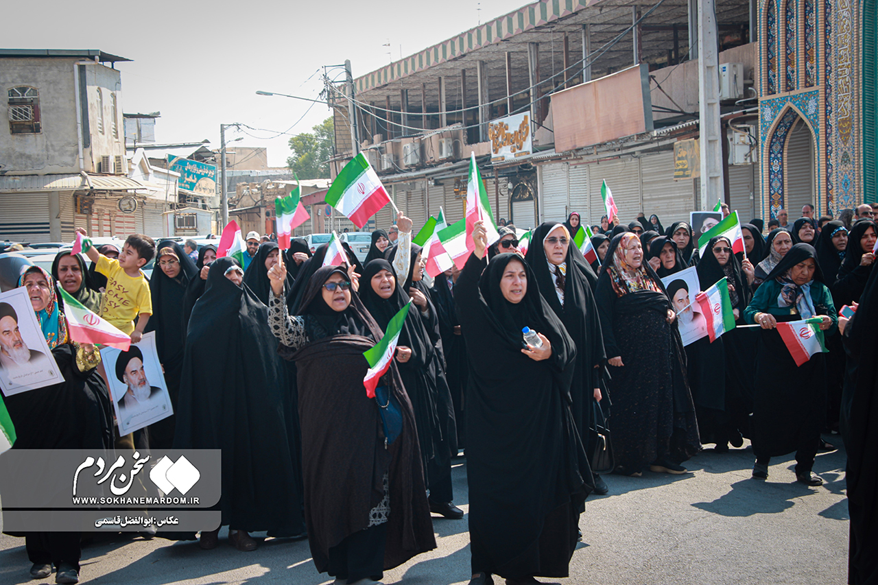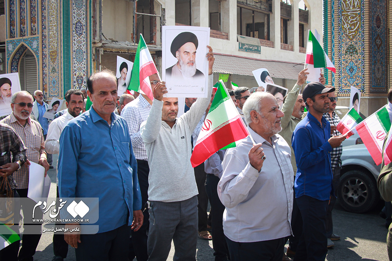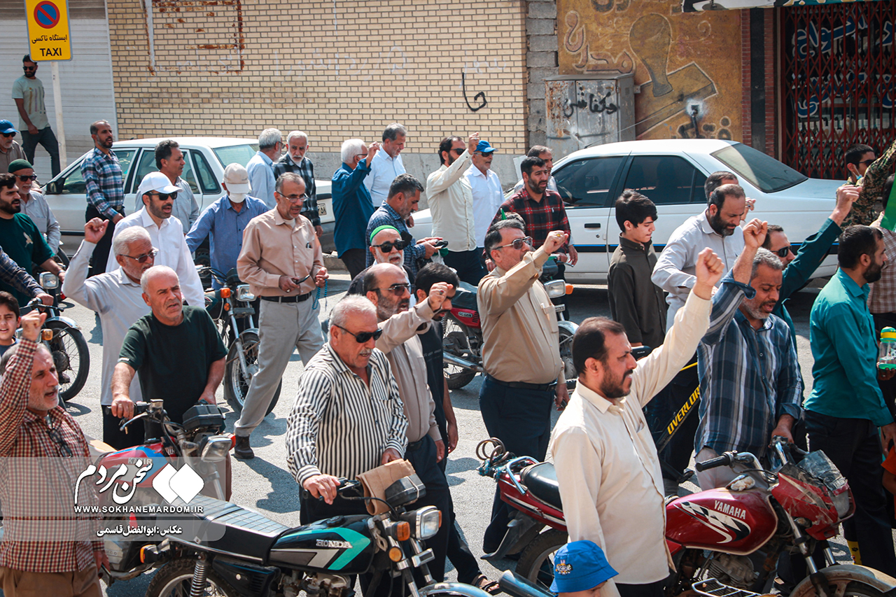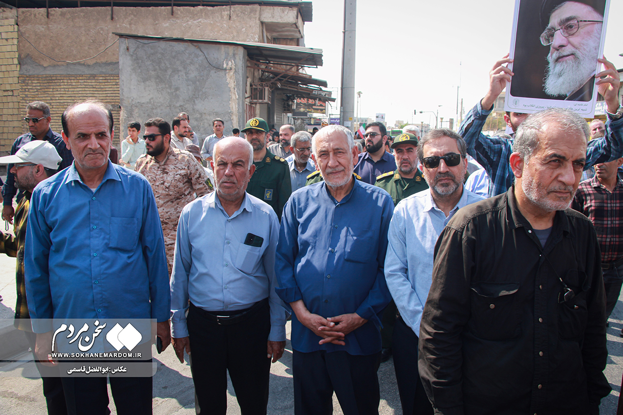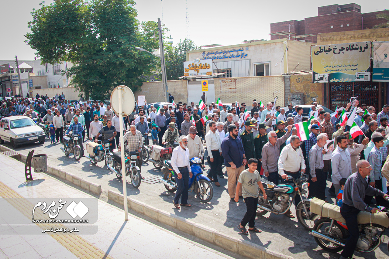 به گزارش سخن مردم: در این مراسم که از مصلای جمعه برازجان آغاز و تا میدان شهید چمران ادامه یافت، اقشار مختلف مردم، خانواده‌های شهدا، روحانیون، بسیجیان و جمعی از مسئولان شهرستان دشتستان حضور داشتند و با سر دادن شعارهایی در حمایت از مقاومت اسلامی فلسطین، جنایات رژیم صهیونیستی را محکوم کردند.