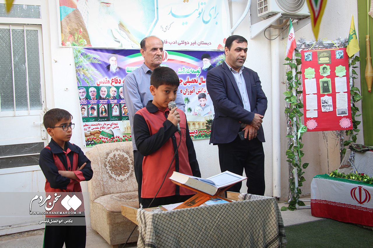 سخن مردمابوالفضل قاسمی | آیین تجلیل از دانش‌آموزان منتخب مسابقات فرهنگی و هنری دبستان غیردولتی ادب فارسی روز شنبه ۱۲ مهرماه با حضور خلیفه، معاون پرورشی و تربیت بدنی آموزش و پرورش شهرستان دشتستان برگزار شد و از دانش‌آموزان برتر این مسابقات تقدیر شد.