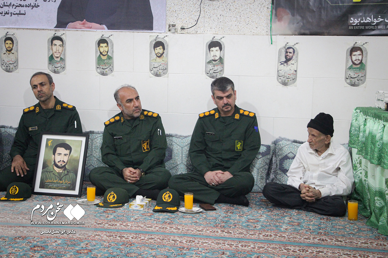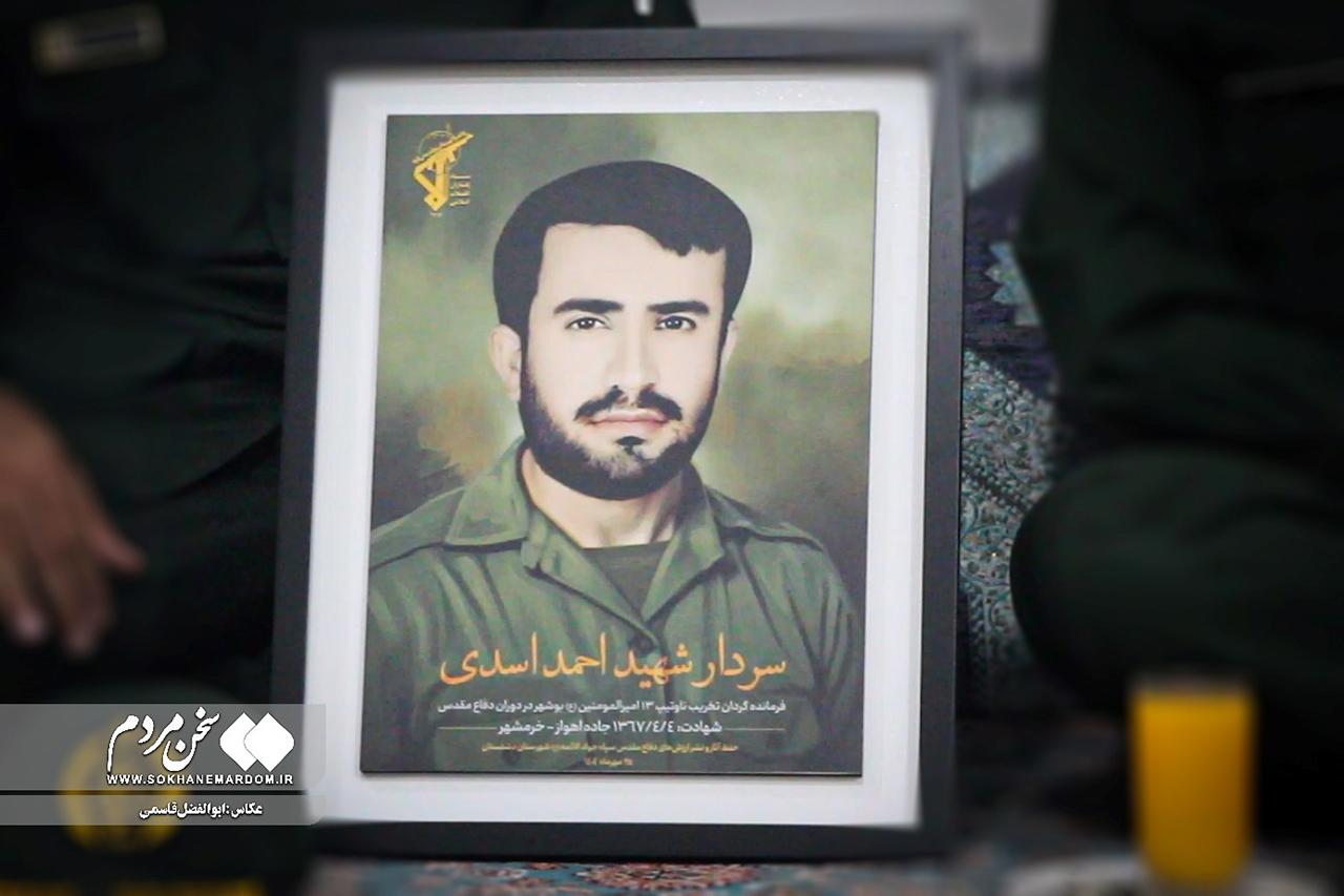 به گزارش سخن مردم: سرهنگ پاسدار شهسوار حاجی‌پور، فرمانده سپاه ناحیه جوادالائمه(ع) شهرستان دشتستان، روز جمعه ۲۵ مهرماه با حضور در منزل خانواده شهید احمد اسدی، ضمن گرامیداشت یاد و نام این شهید والامقام، با خانواده ایشان دیدار کرد.