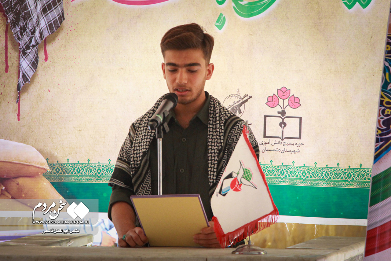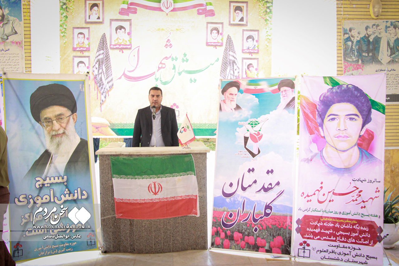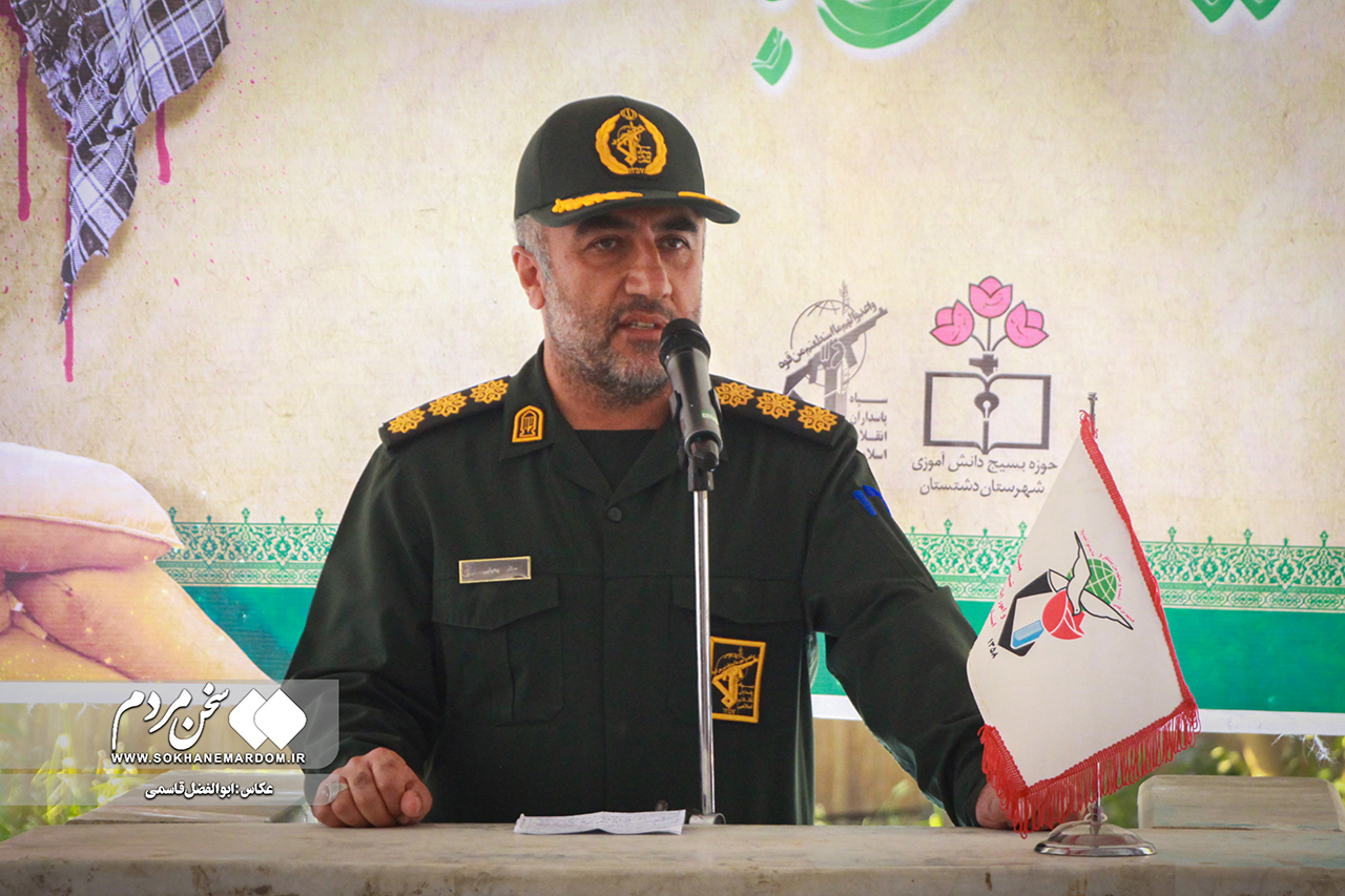 سرهنگ یحیایی، جانشین ناحیه مقاومت بسیج سپاه حضرت جوادالائمه‌(ع) شهرستان دشتستان، ضمن گرامیداشت یاد و خاطره حضرت امام خمینی(ره) و همه شهیدان والامقام، به‌ویژه ۶۷۵ شهید شهرستان دشتستان، ۱۶۳ شهید دانش‌آموز و ۴۳ شهید فرهنگی، گفت: شهیدان ستارگان درخشان تاریخ این دیارند و ما امروز آمده‌ایم تا با آنان عهد ببندیم و راهشان را با بصیرت، ولایت‌مداری و مقاومت در برابر استکبار جهانی ادامه دهیم.