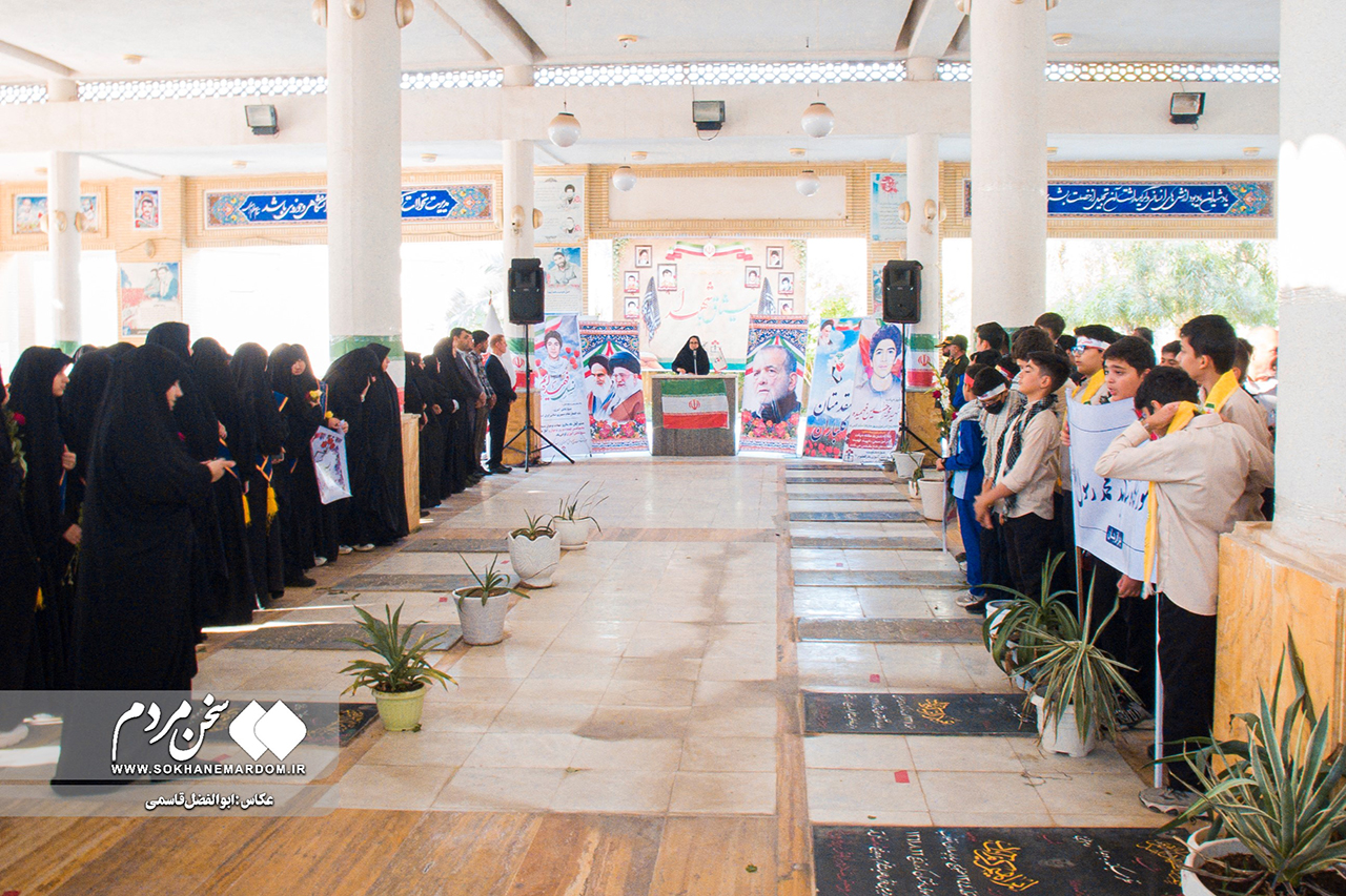 مظفری تصریح کرد: امروز در هفته بسیج دانش‌آموزی و در کنار مزار شهدا گرد آمده‌ایم تا نه تنها غبار از سنگ مزارشان بزداییم، بلکه دل‌هایمان را از غبار غفلت پاک کنیم و با آرمان‌های شهیدان پیمان دوباره ببندیم.