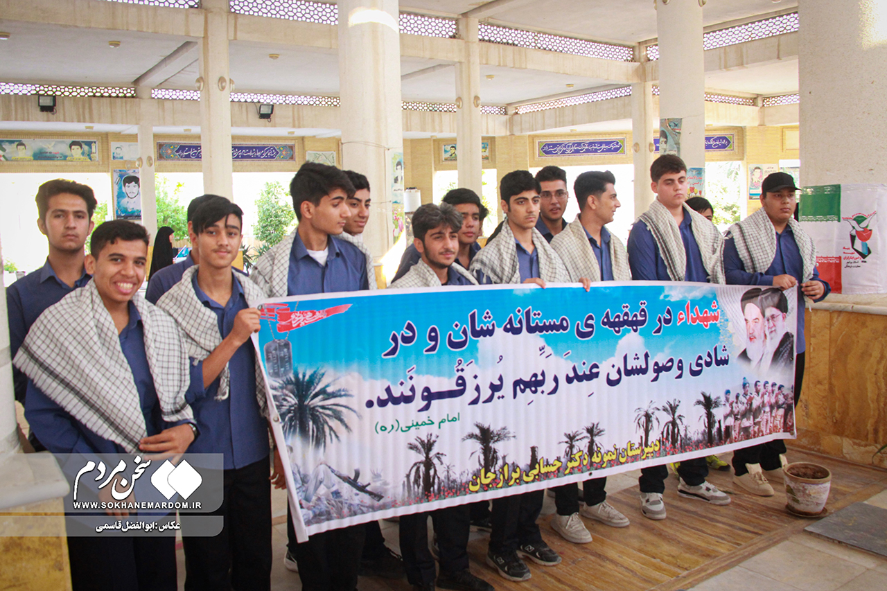 سخن مردمابوالفضل قاسمی | همزمان با روز نوجوان و آغاز هفته بسیج دانش‌آموزی، آیین غبارروبی و عطرافشانی گلزار شهدای برازجان با حضور دانش‌آموزان، فرهنگیان و جمعی از مسئولان شهرستان دشتستان برگزار شد.