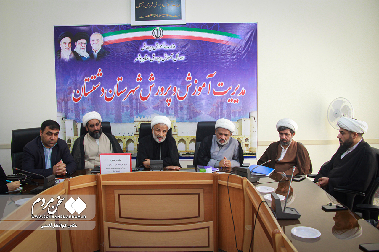 سخن مردم: ابوالفضل قاسمی | با هدف گسترش فرهنگ قرآنی در میان دانشآموزان، جلسه رابطین طرح ملی حفظ جزء ۳۰ قرآن کریم با حضور امامجمعه دشتستان، مدیرکل تبلیغات اسلامی استان بوشهر و معاون پرورشی آموزشوپرورش شهرستان دشتستان برگزار شد.