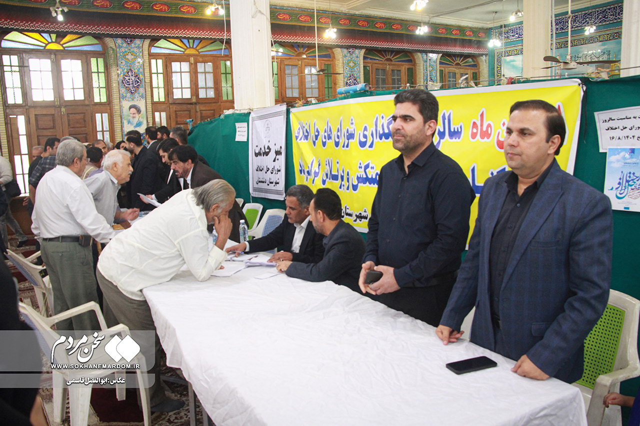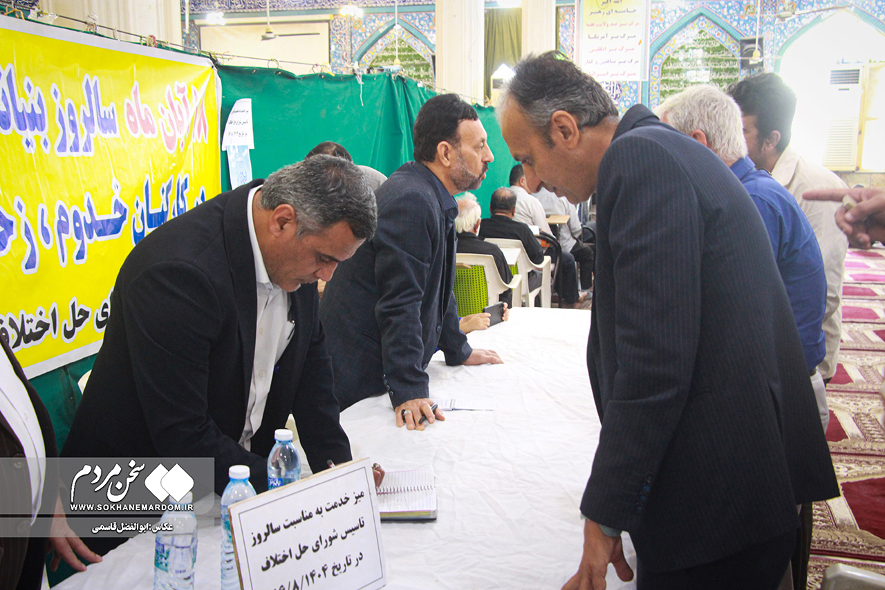 به گزارش سخن مردم: به مناسبت سالروز تأسیس شورای حل اختلاف، میز خدمت دستگاه قضایی با حضور معاون قضایی دادگستری استان بوشهر، دادستان، جمعی از قضات و اعضای شورای حل اختلاف شهرستان دشتستان در مصلی نماز جمعه برازجان برگزار شد.