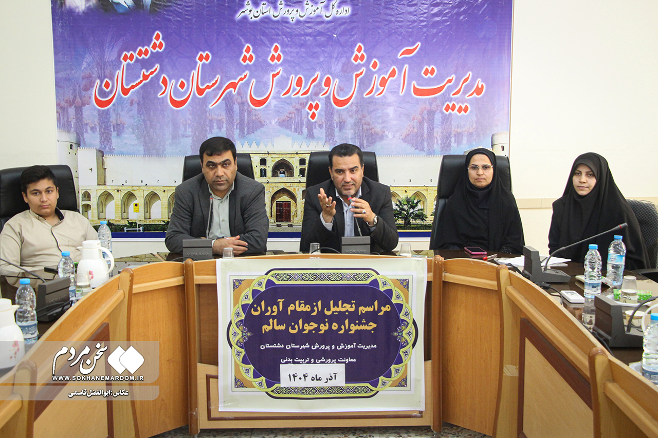 به گزارش سخن مردم: این مراسم روز چهارشنبه، ۵ آذرماه، با حضور سلیمان حیاتیاصل، مدیر آموزش و پرورش شهرستان، ابوذر خلیفه، معاون پرورشی و تربیتبدنی، و کارشناس حوزه مراقبت در برابر آسیبهای اجتماعی، در سالن مدیریت آموزش و پرورش دشتستان برگزار گردید.