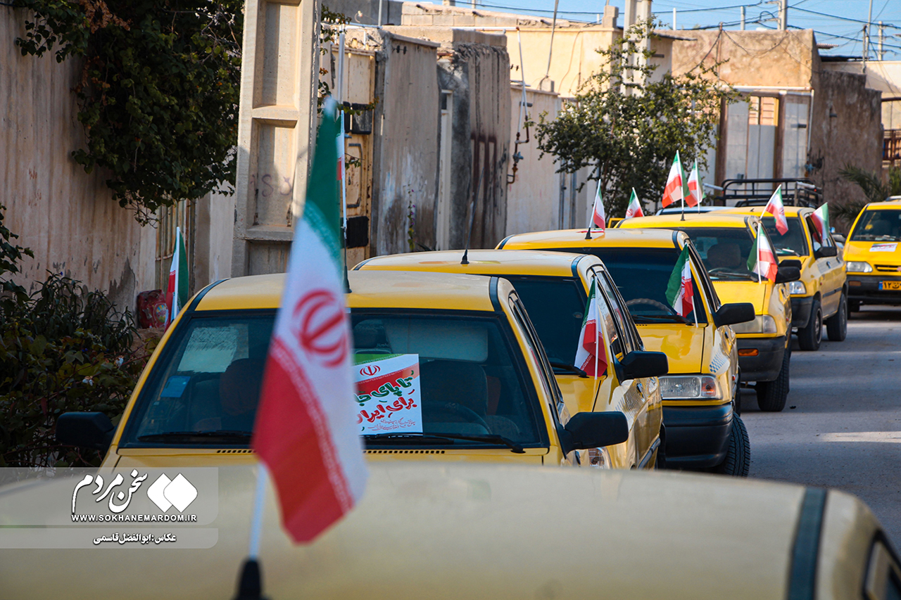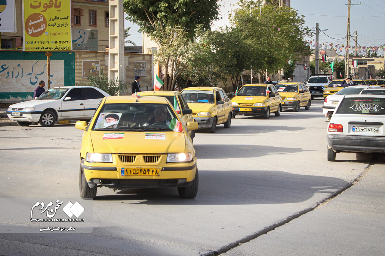 به گزارش سخن مردم: این آیین باشکوه صبح امروز ۱۲ بهمنماه با حضور جمعی از مسئولان شهرستان برگزار و خودروهای نیروهای نظامی و انتظامی و ناوگان واحد تاکسیرانی شهرداری، مسیر خود را از مقابل مسجد قدس (پایگاه طریقالقدس) آغاز کرده و با حرکت در سطح شهر به سمت گلزار شهدای برازجان ادامه دادند.